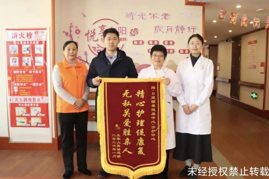 一面锦旗,不仅是鞠叔及家属对介护中心服务的最高褒奖,更是一份沉甸甸的责任与鞭策。未来,介护中心将继续带着这份信任与期许,以更优质的服务、更饱满的热情,守护好每一位长者的晚年幸福,让爱与温暖在中心的每一个角落延续,不负每一份托付,不负每一份深情。