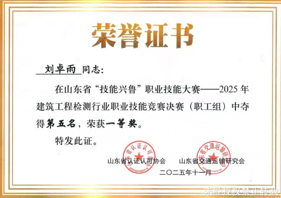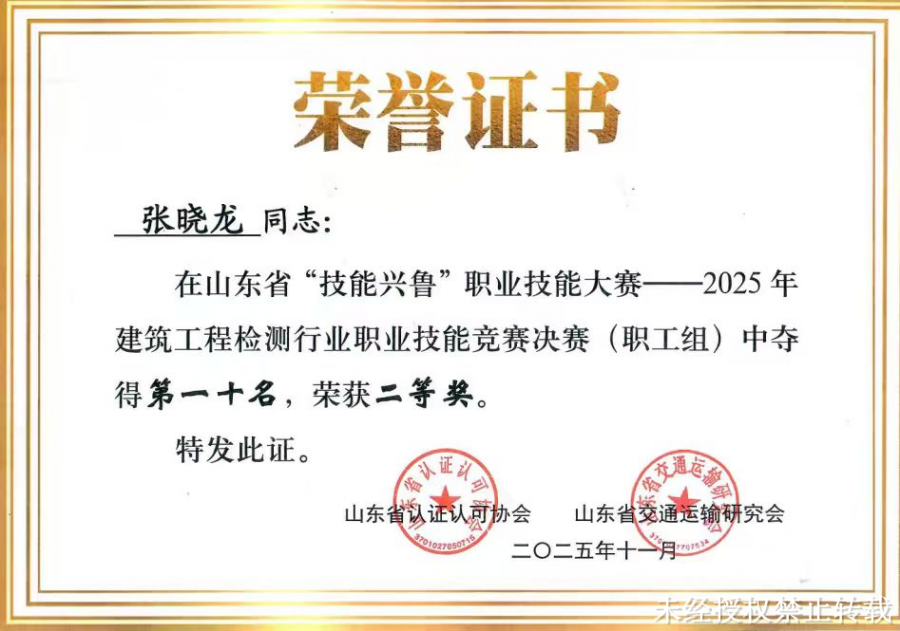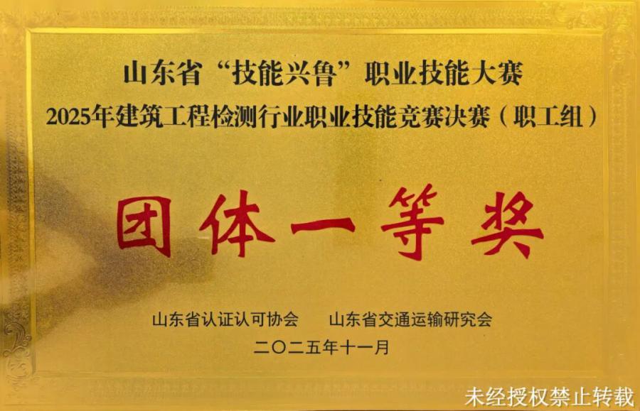 近日,2025年山东省“技能兴鲁”建筑工程检测行业职业技能竞赛落幕。山东交建集团代表队斩获职工组团体一等奖,1人荣获个人一等奖,1人荣获个人二等奖。
