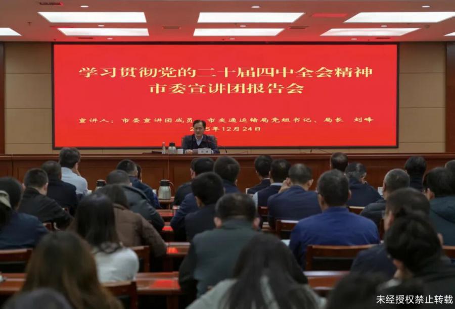 根据市委统一部署,12月24日下午,学习贯彻党的二十届四中全会精神市委宣讲团报告会在日照交通能源发展集团举行。市委宣讲团成员、市交通运输局党组书记、局长刘峰作宣讲报告。